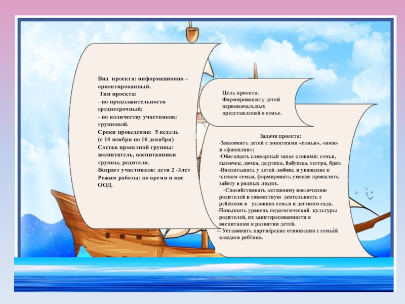 Цель проекта. Формирование у детей первоначальных представлений о семье.
