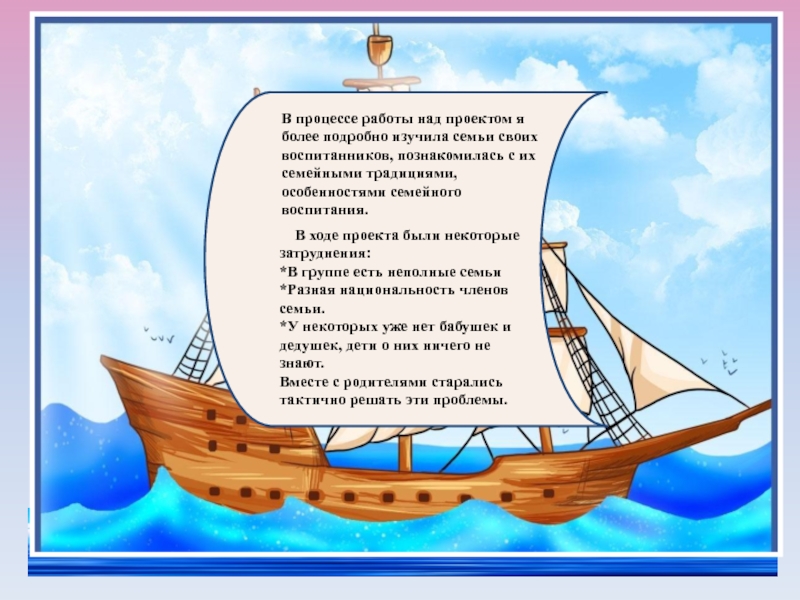 В процессе работы над проектом я более подробно изучила семьи своих воспитанников, познакомилась с их семейными традициями, особенностями семейного воспитания.