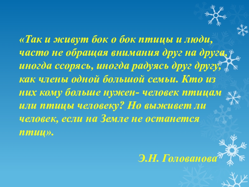 Слайд 3«Так и живут бок о бок птицы и люди, часто не