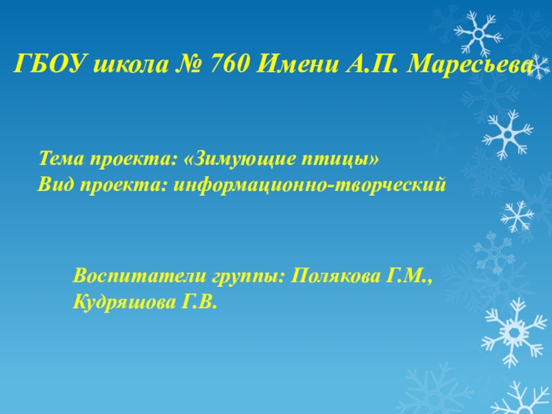 Воспитатели группы: Полякова Г.М., Кудряшова