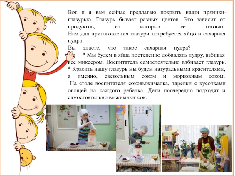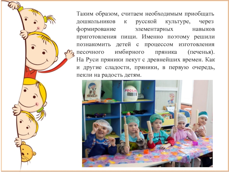 элементарных навыков приготовления пищи. Именно поэтому решили познакомить детей с процессом изготовления песочного имбирного пряника (печенья).