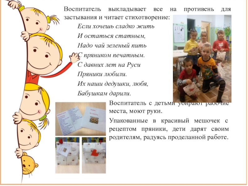 Слайд 24Воспитатель выкладывает все на противень для застывания и читает стихотворение: