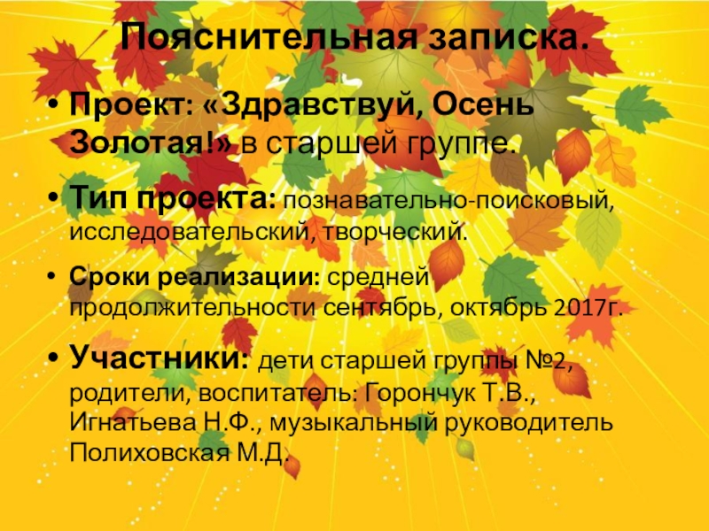 Проект: «Здравствуй, Осень Золотая!» в старшей группе.