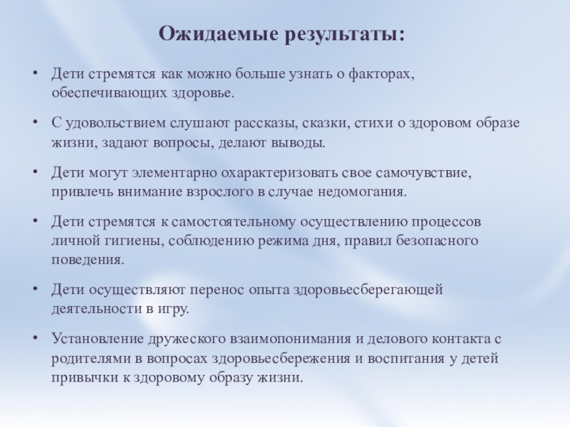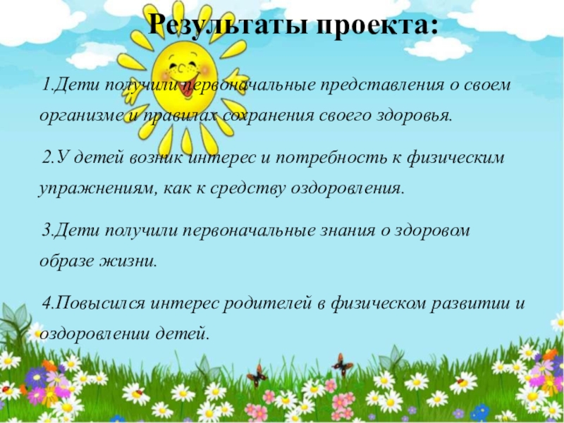 1.Дети получили первоначальные представления о своем организме и правилах сохранения