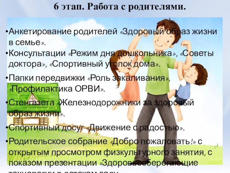 Установление дружеского взаимопонимания и делового контакта с родителями в вопросах здоровьесбережения и воспитания у детей привычки к здоровому образу жизни.