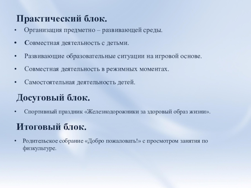 Родительское собрание «Добро пожаловать!» с открытым просмотром физкультурного занятия, с показом презентации «Здоровьесберегающие технологии в детском саду».