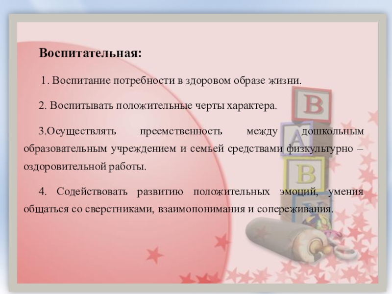 Способствовать становлению интереса детей к правилам здоровьесберегающего поведения.