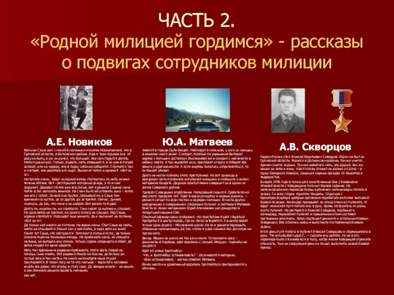 «Родной милицией гордимся» - рассказы о подвигах сотрудников милиции