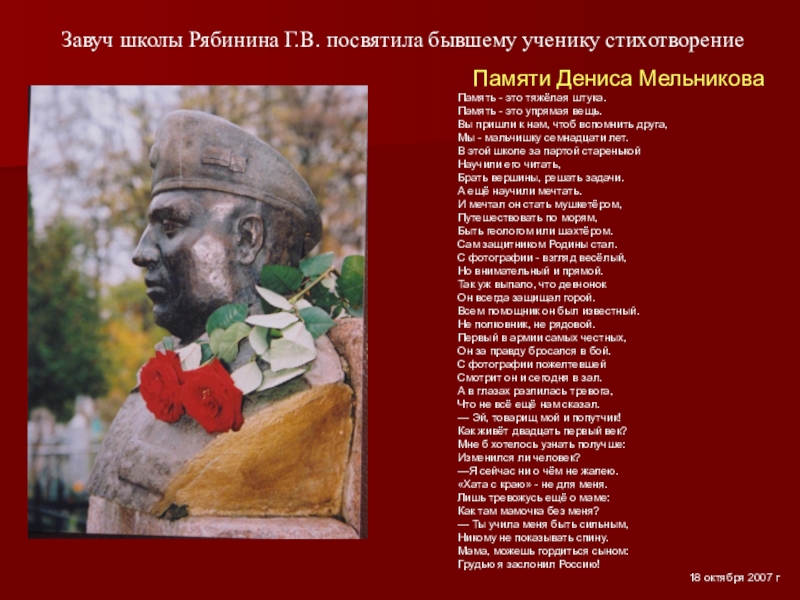 Слайд 11Завуч школы Рябинина Г.В. посвятила бывшему ученику стихотворение