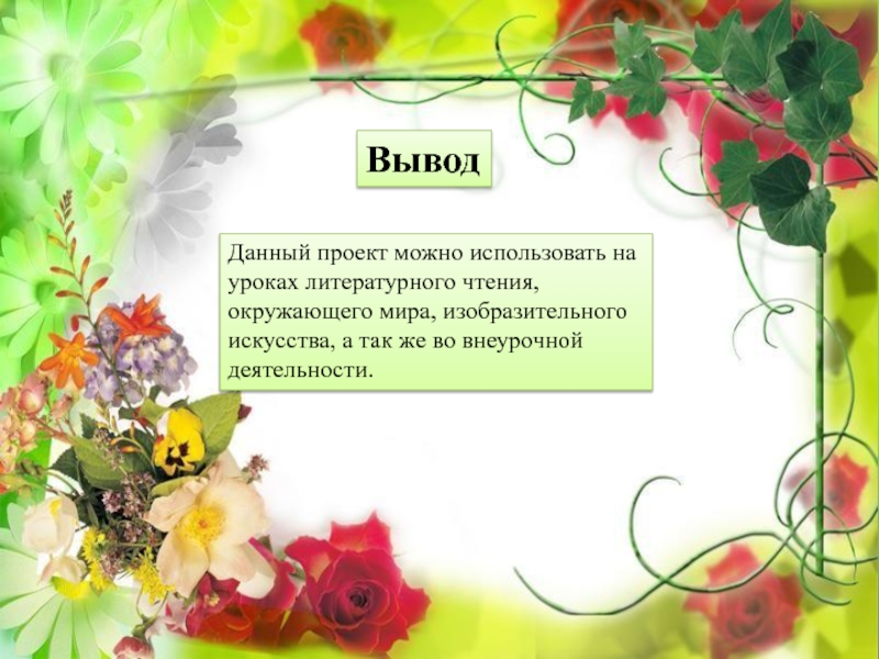Данный проект можно использовать на уроках литературного чтения, окружающего мира, изобразительного