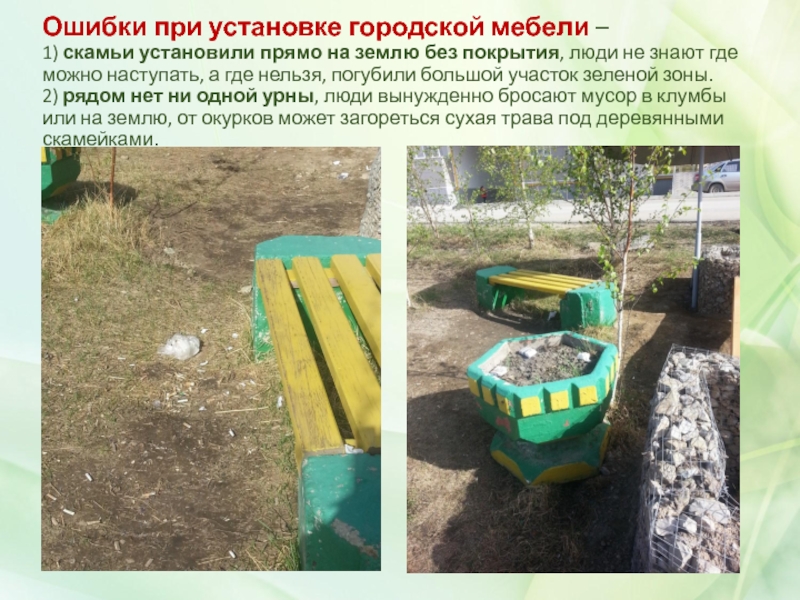 Например: озеленение, освещение, установка детских и игровых площадок, установка городской мебели и многое другое.