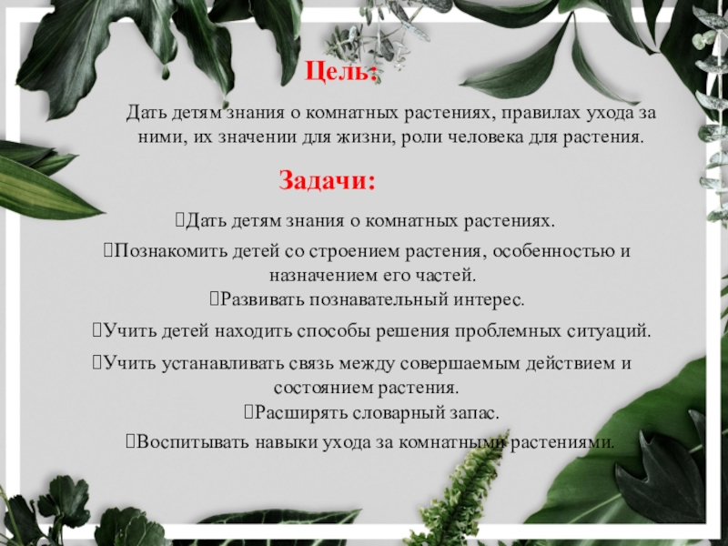 У детей нет знаний о комнатных растениях, их строении и правилах ухода за ними.