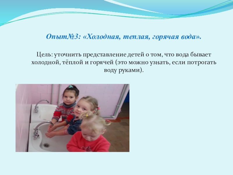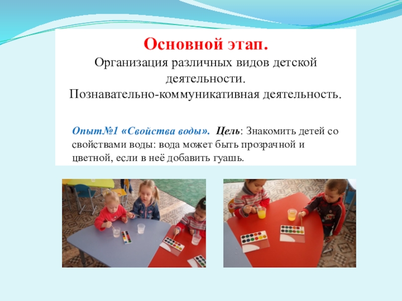 Опыт№1 «Свойства воды». Цель: Знакомить