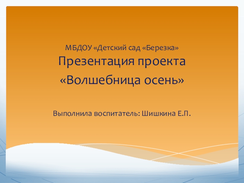 МБДОУ «Детский сад «Березка»Презентация проекта «Волшебница осень»Выполнила воспитатель: Шишкина Е.П.
