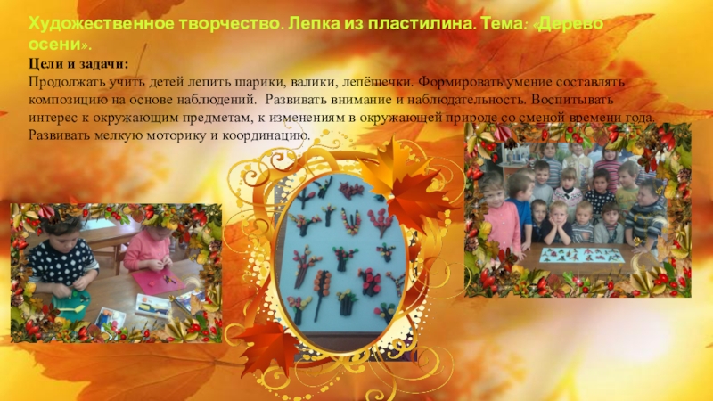 Слайд 18Художественное творчество. Лепка из пластилина. Тема: «Дерево осени».
