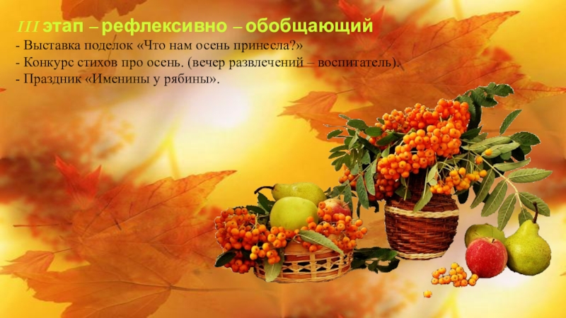 - Конкурс стихов про осень. (вечер развлечений – воспитатель).