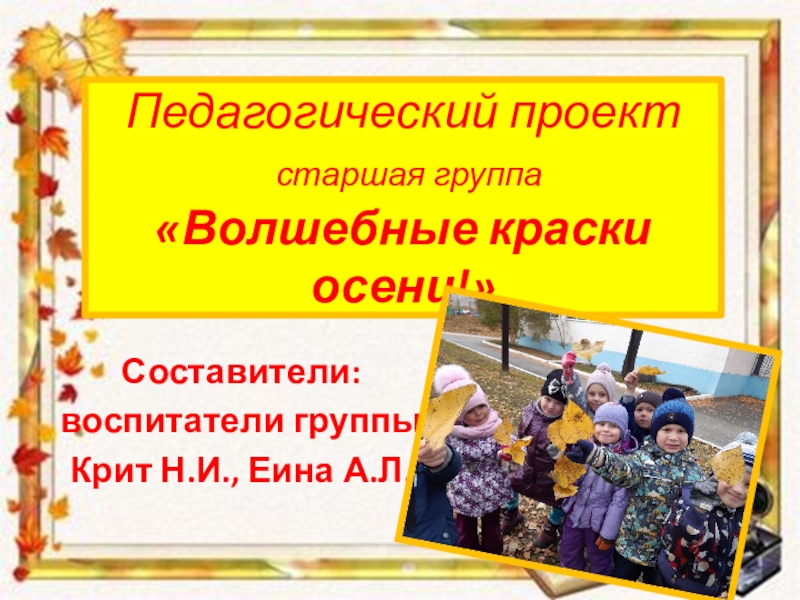 Педагогический проект  старшая группа «Волшебные краски осени!»Составители: воспитатели группыКрит Н.И., Еина А.Л.