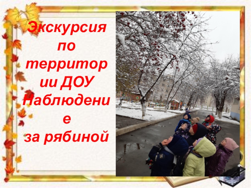 Слайд 13Экскурсия по территории ДОУ Наблюдение за рябиной