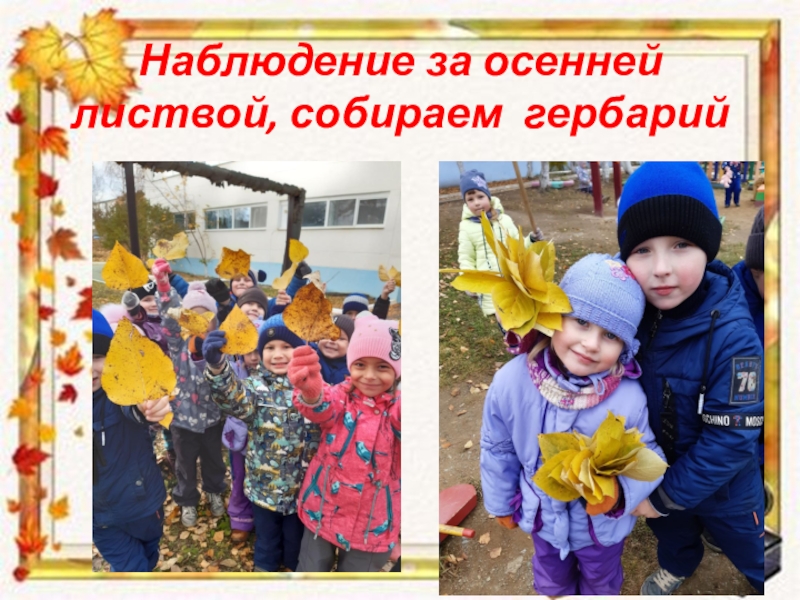 Слайд 8Наблюдение за осенней листвой, собираем гербарий