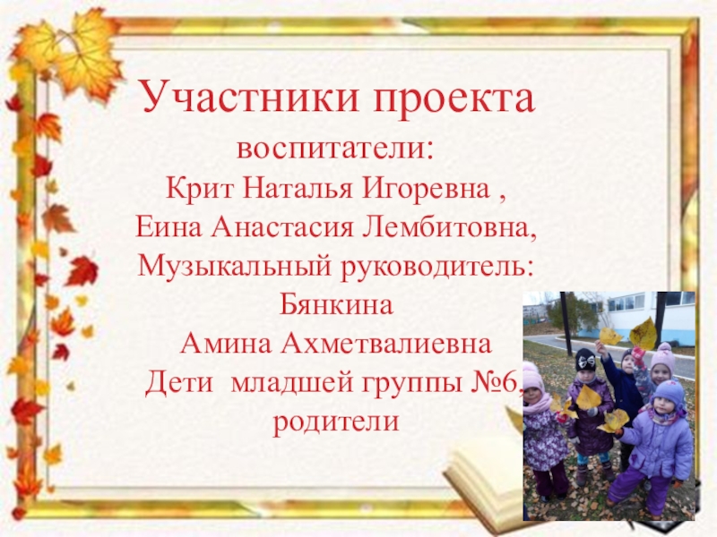 Слайд 2Участники проекта воспитатели: Крит Наталья Игоревна , Еина Анастасия Лембитовна, Музыкальный руководитель: