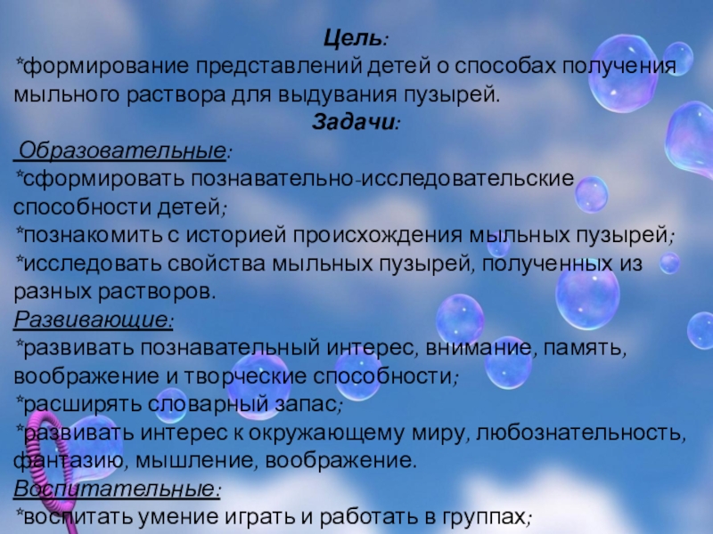 детей знаний о разных способах получения мыльных растворов;