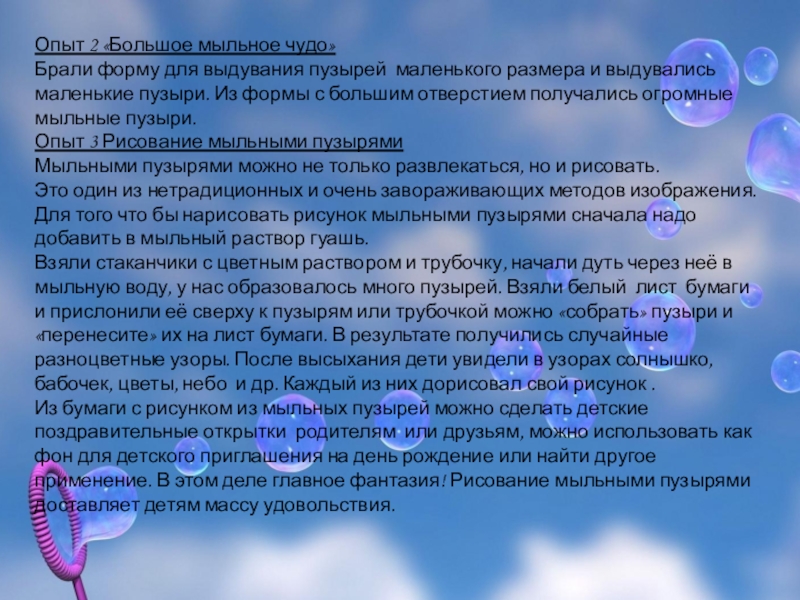 Опыт 3 Рисование мыльными пузырями