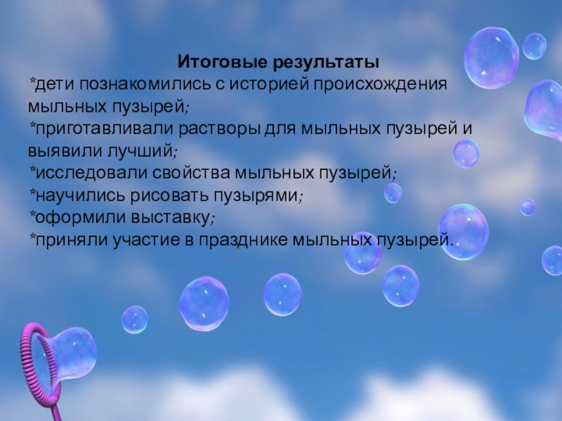 *исследовали свойства мыльных пузырей;