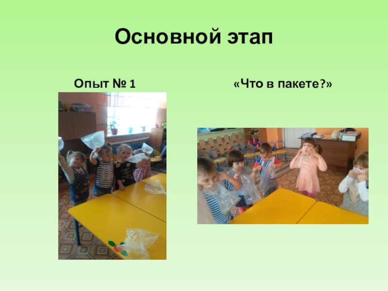 Основной этапОпыт № 1«Что в пакете?»