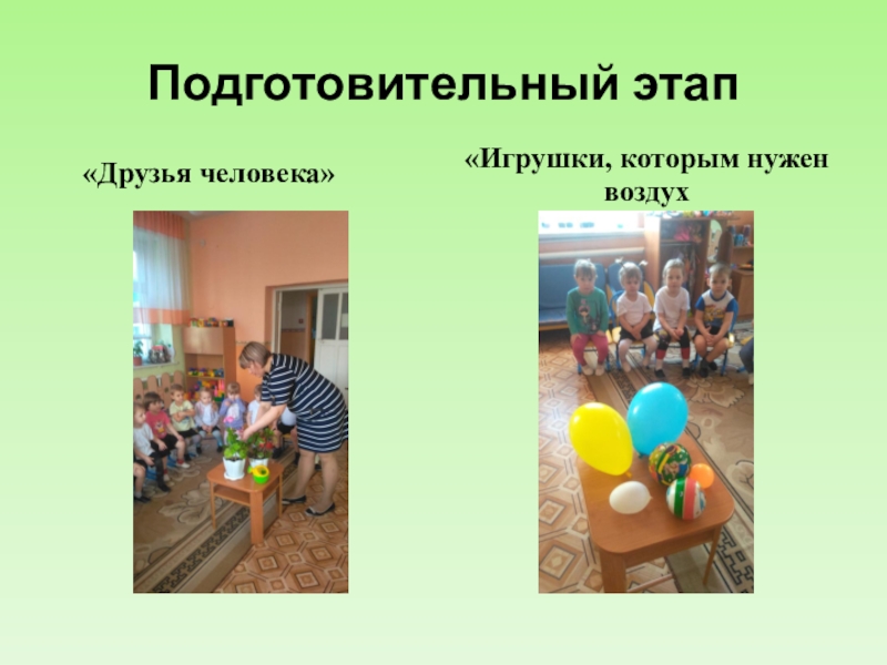 Подготовительный этап«Друзья человека»«Игрушки, которым нужен воздух