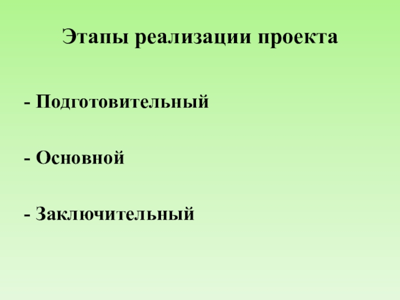 Этапы реализации проекта- Подготовительный   - Основной  - Заключительный