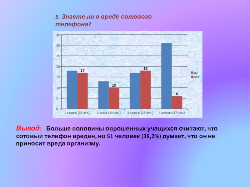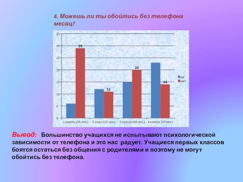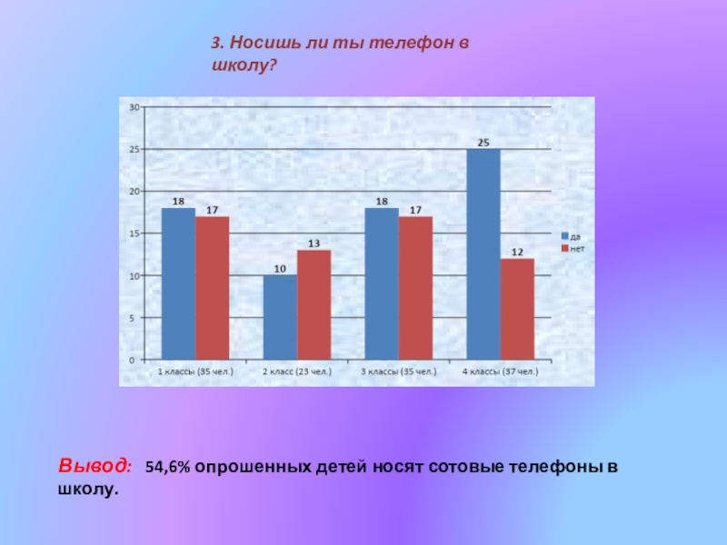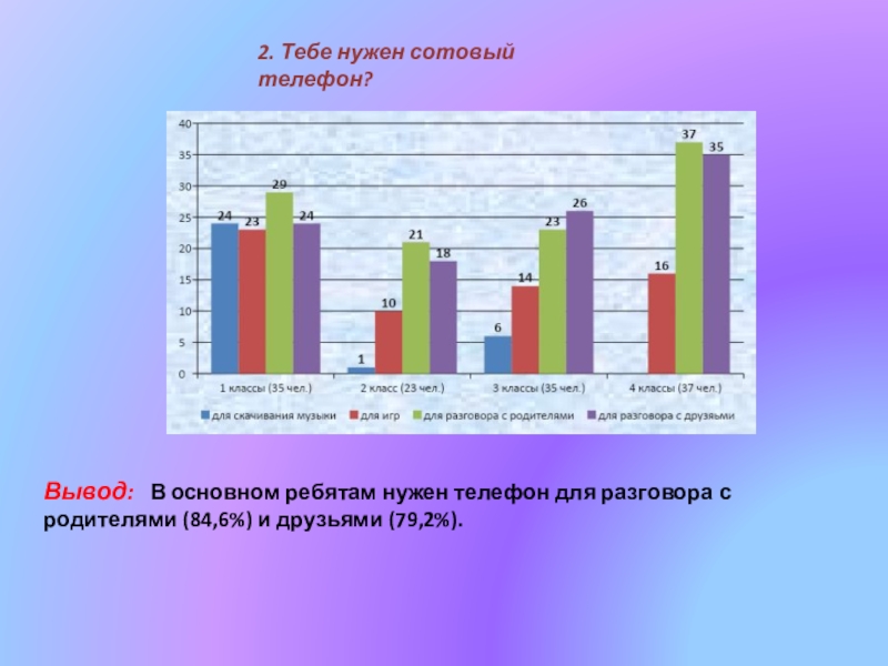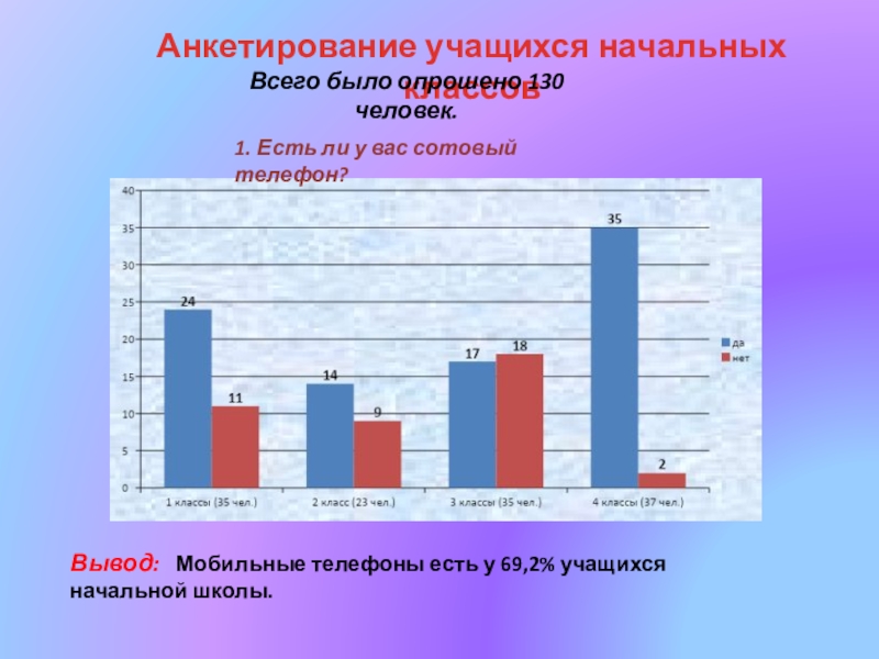 Вывод: Мобильные телефоны есть у 69,2% учащихся начальной школы.