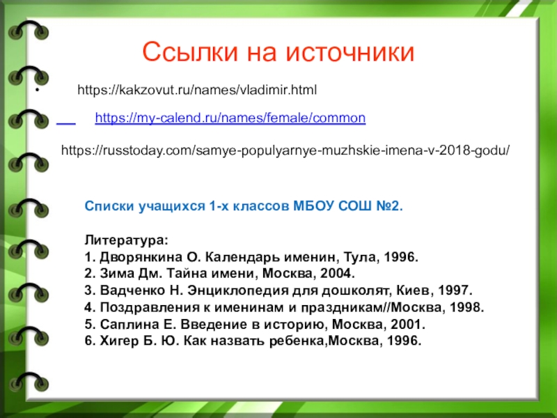 1. Дворянкина О. Календарь именин, Тула, 1996.