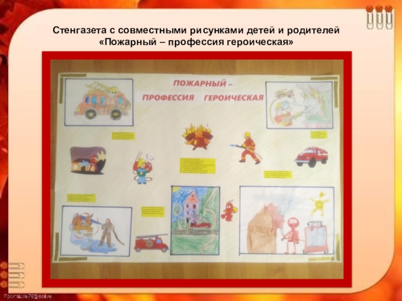 пожаре Дети ближе познакомились с профессией пожарного Дети вместе с родителями приняли активное участие в конкурсе рисунков, на противопожарную тему