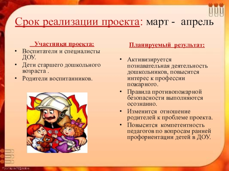 Слайд 5Срок реализации проекта: март - апрель