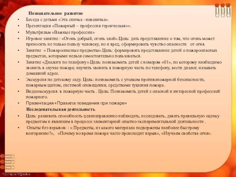 Беседы о правилах пожарной безопасности