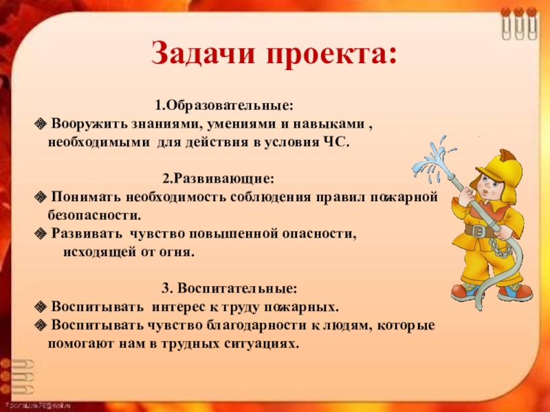 Понимать необходимость соблюдения правил пожарной безопасности.