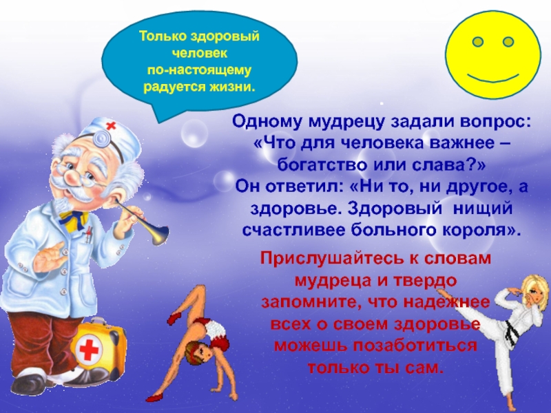 Прислушайтесь к словам мудреца и твердо запомните, что надежнее всех о своем здоровье можешь позаботиться только ты сам.