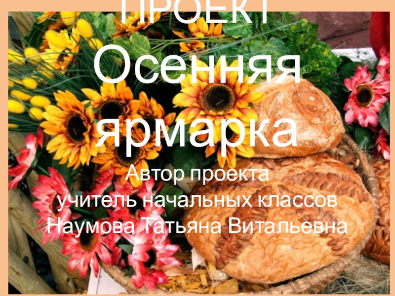 Слайд 1 ПРОЕКТ Осенняя ярмарка Автор проекта учитель начальных классов Наумова Татьяна Витальевна