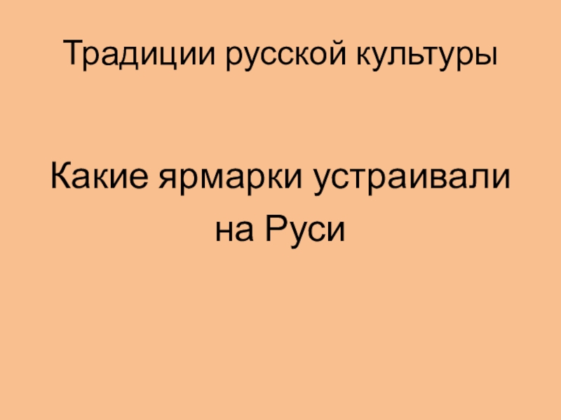 Традиции русской культуры  Какие ярмарки устраивали на Руси