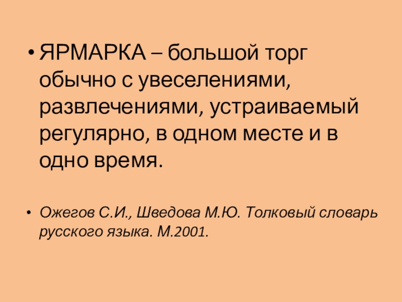 Слайд 2ЯРМАРКА – большой торг обычно с увеселениями, развлечениями, устраиваемый регулярно, в