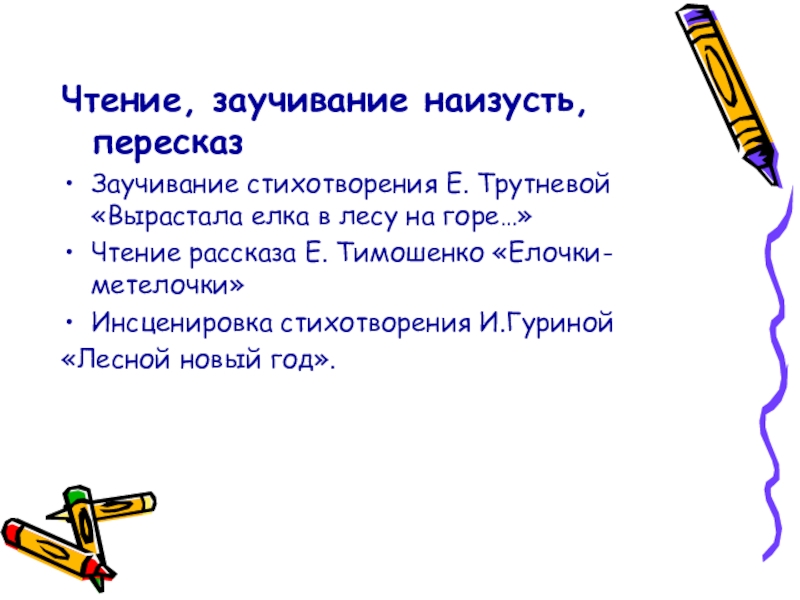 Чтение рассказа Е. Тимошенко «Елочки-метелочки»