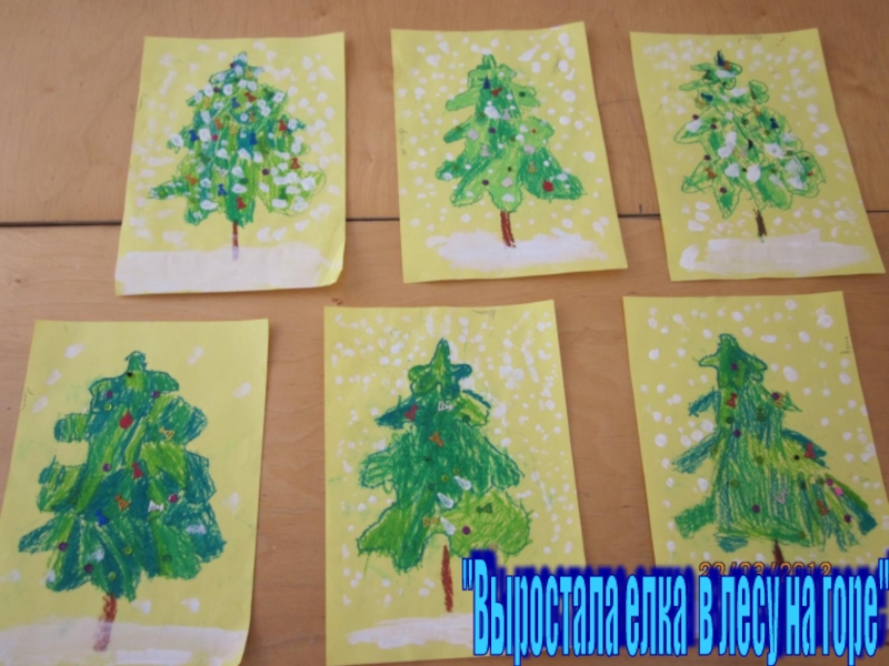 Оборудование. У воспитателя книжная иллюстрация с изображением елки, соответствующей описанию в стихотворении Е. Трутневой «Ёлка», лист бумаги с нарисованной веткой ели ( для показа изображения шишек и снега). У детей листы бумаги с разным фоном под цвет неба, краски гуашь, мягкие кисточки.