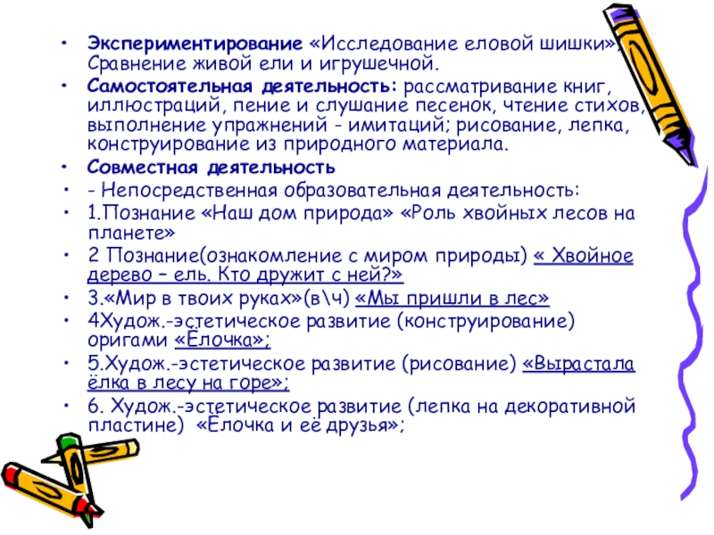 Слайд 9Экспериментирование «Исследование еловой шишки»; Сравнение живой ели и игрушечной.