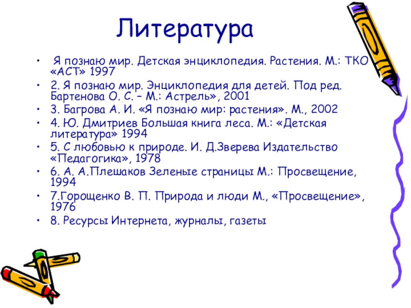 3. Багрова А. И. «Я познаю мир: растения». М., 2002