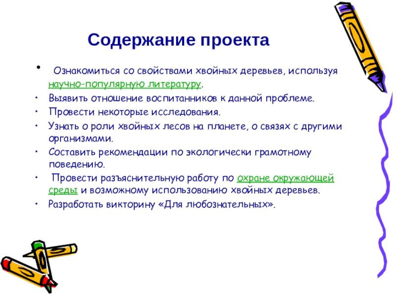 Провести разъяснительную работу по охране окружающей среды и возможному использованию хвойных деревьев.