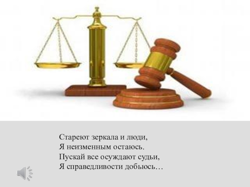 Слайд 25Стареют зеркала и люди,  Я неизменным остаюсь.  Пускай все осуждают судьи,  Я справедливости добьюсь…