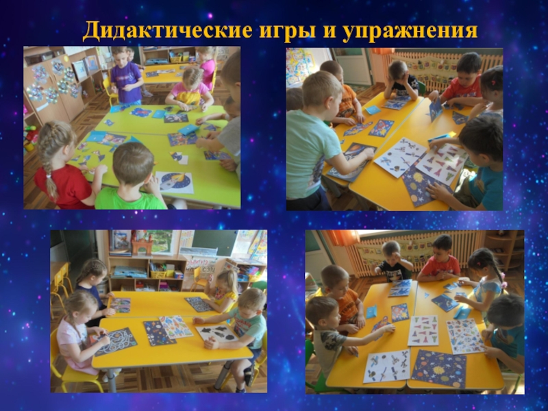 - Дидактические игры и упражнения «Куда летит ракета», «Сосчитай сколько», «Назови правильно», «Космические лабиринты», «Найди отличия», Разрезные картинки,