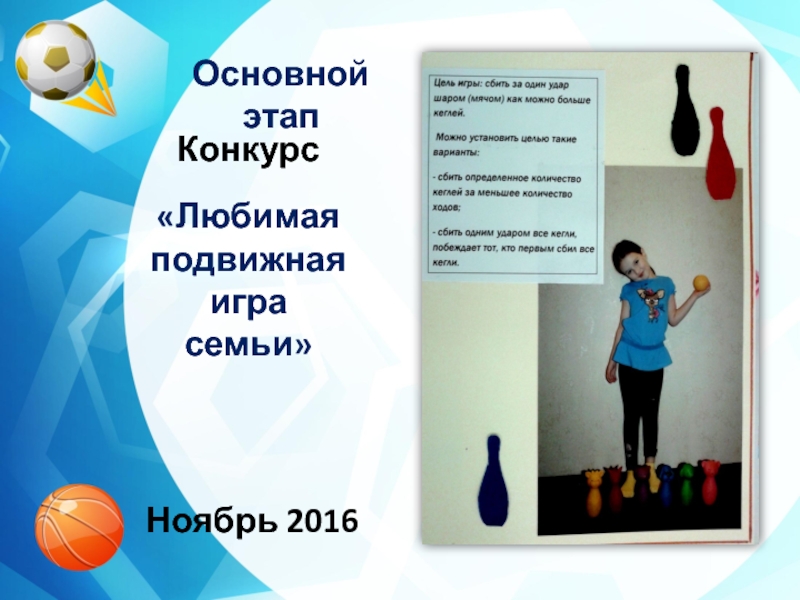 Основной этап Конкурс «Любимая подвижная игра семьи»Ноябрь 2016