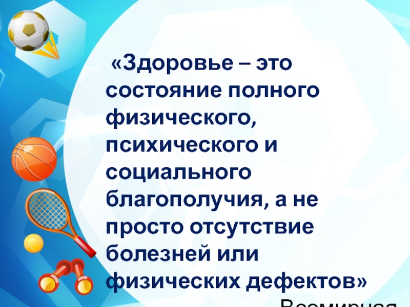 «Здоровье – это состояние полного физического, психического и социального благополучия, а не просто отсутствие болезней или
