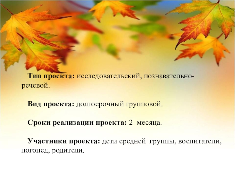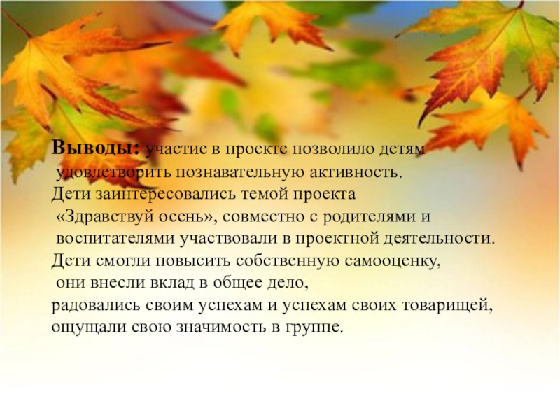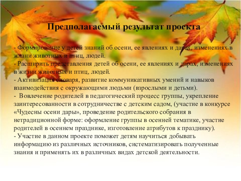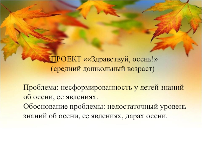 Обоснование проблемы: недостаточный уровень знаний об осени, ее явлениях, дарах осени.